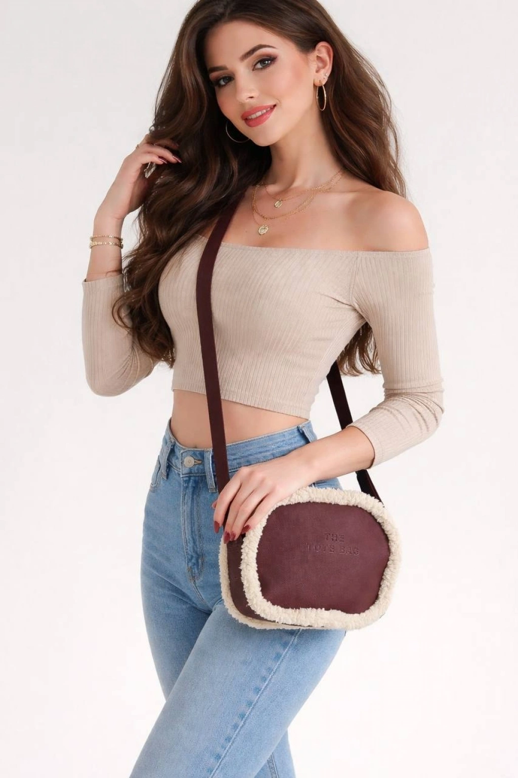 Bordo Renk Yanları Peluş Çanta CB88141