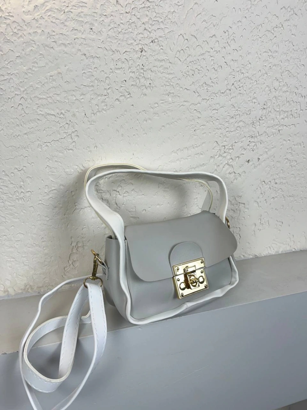 Gri Beyazlı Renk Kilitli Çapraz Çanta CB6974