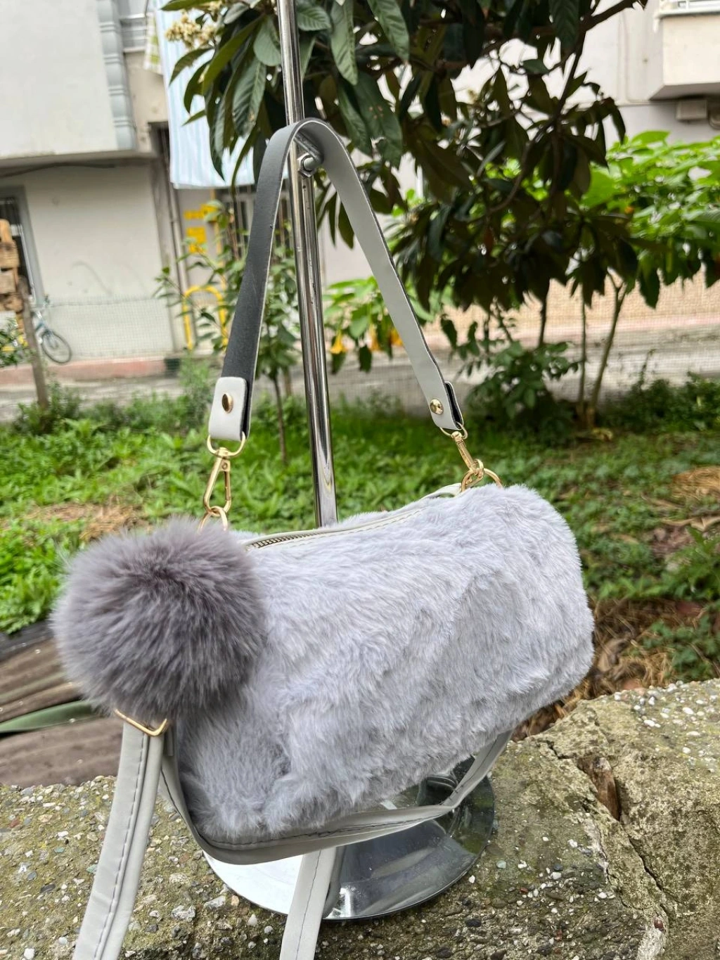 Gri Renk PONPON PELUŞLU Çanta CB82191
