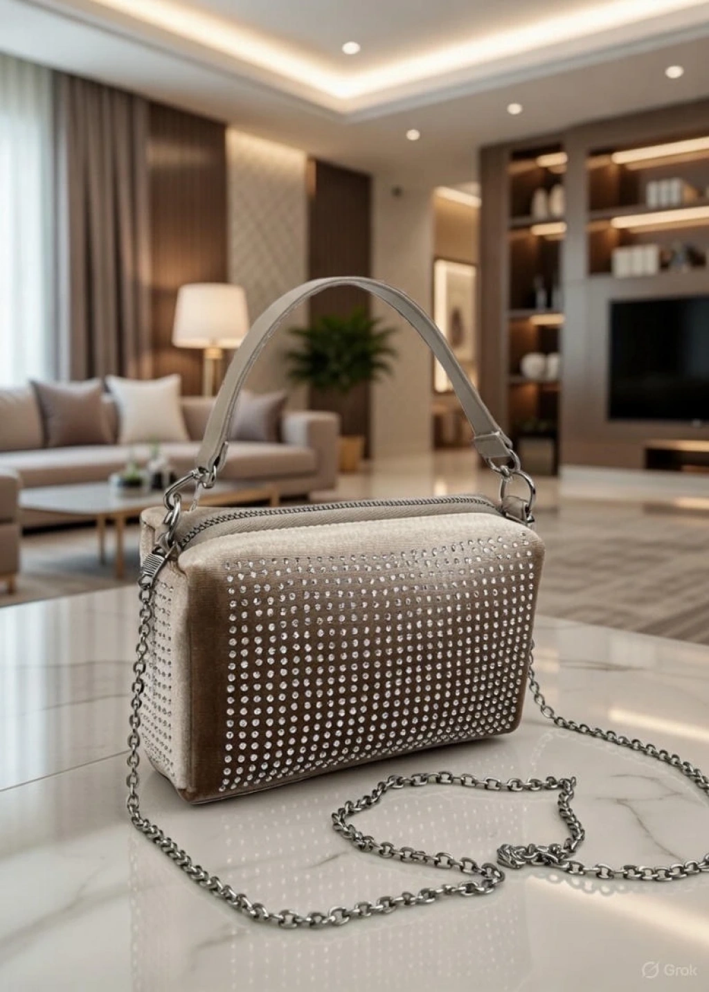 Kahve Renk Taşlı Zincirli Çanta CB1230