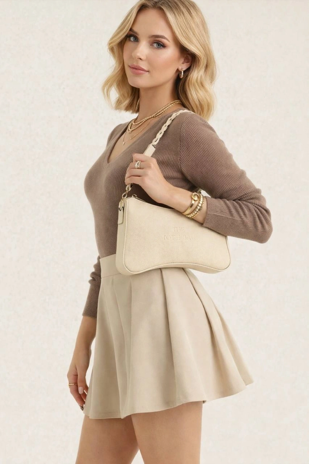 Krem Renk ÖRGÜLÜ BAGET Çanta CB70141