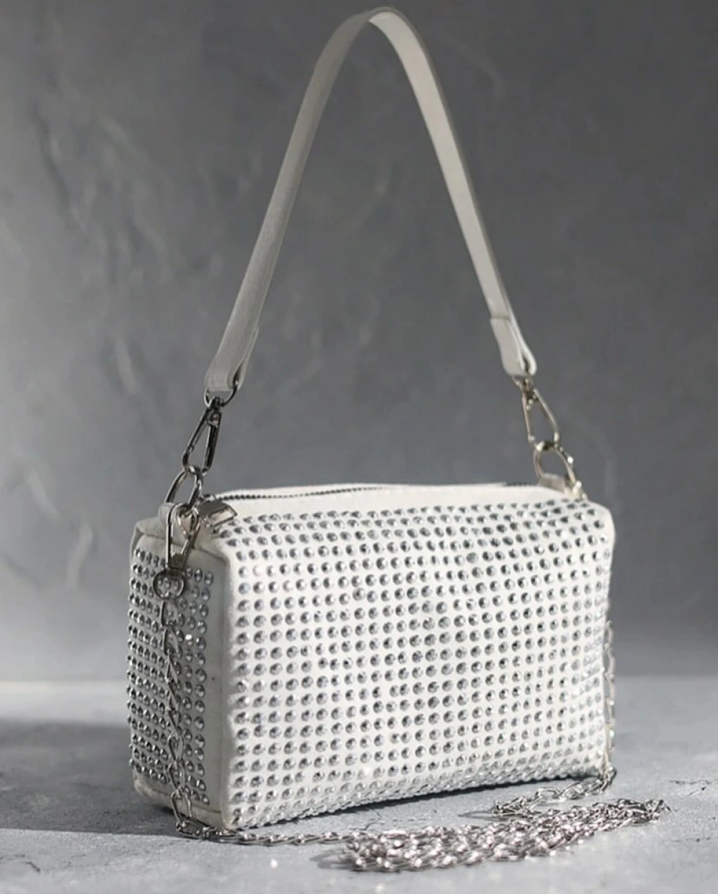 Krem Renk Taşlı Zincirli Çanta CB1230