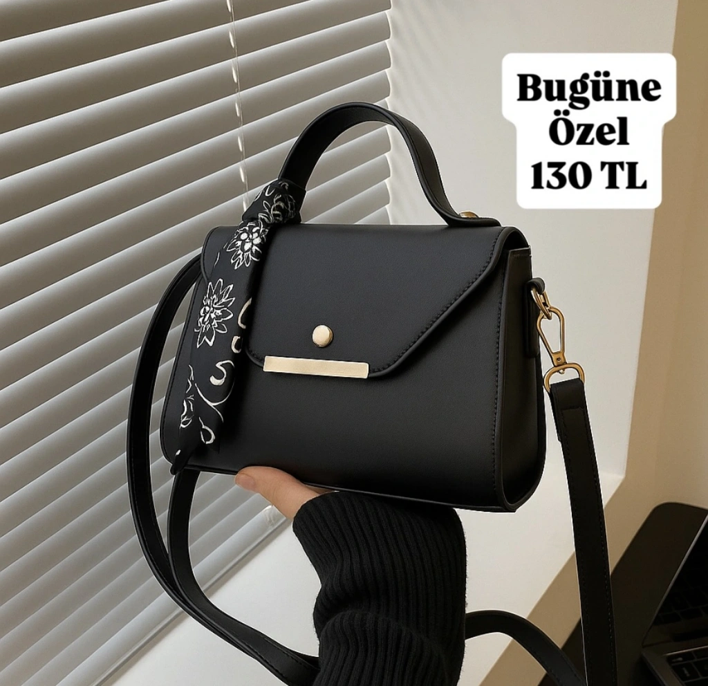 Siyah Renk Kalıp Fularlı Çanta CB9145