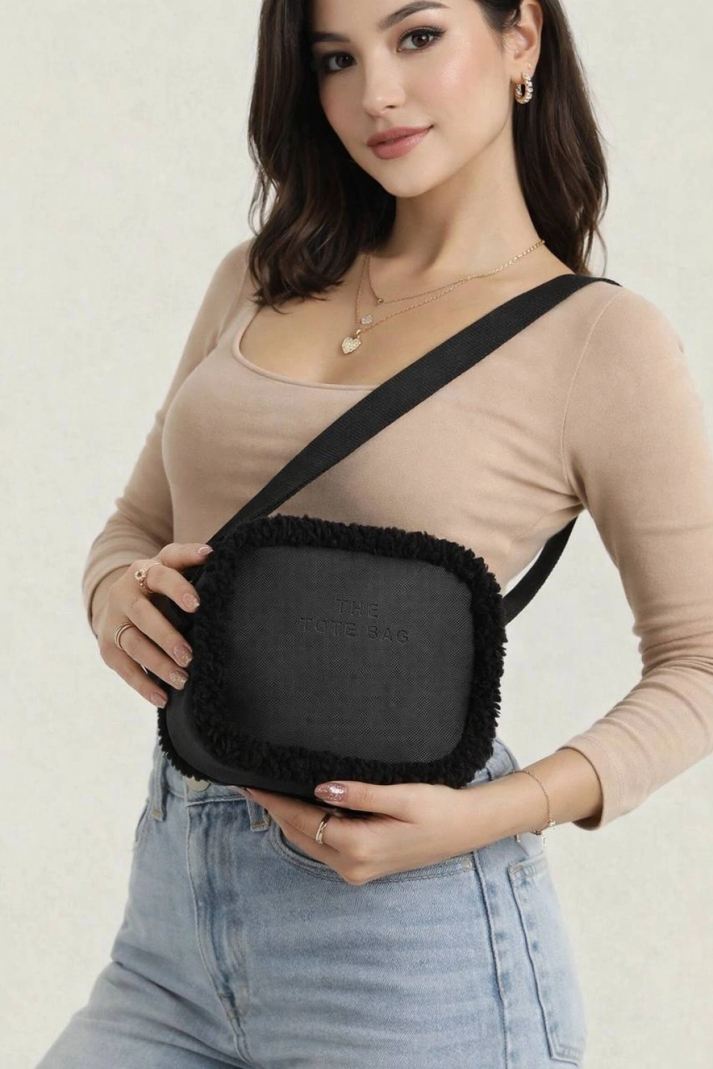 Siyah Renk Yanları Peluş Çanta CB88141