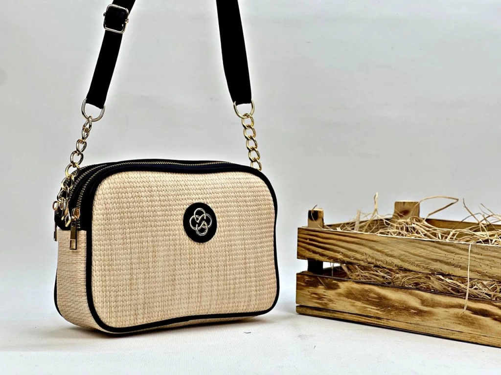 Vizon Renk Kenarları Siyah 3 BÖLMELİ HASIR Çanta CB9809